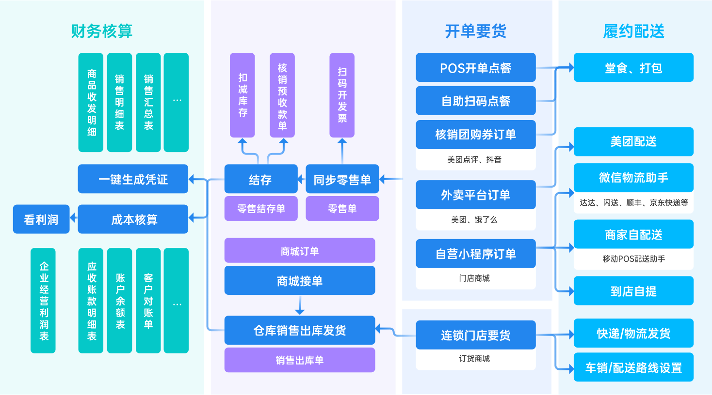 为餐饮企业提供点单、收款、外卖团购、营销、供应链协同、成本管控、财务核算全流程管理解决方案,覆盖小吃、正餐、烧烤、茶饮、火锅、烘焙、自助餐、园区食堂以及综合零售等场景