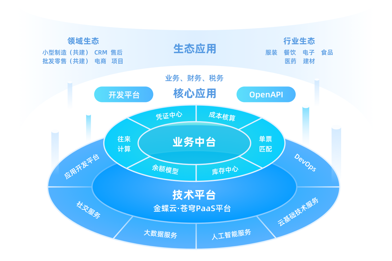 提供丰富生态应用,在开发平台及业财税核心应用API的两大能力支撑下,支持行业特性开发及异构系统集成,企业可按需灵活选购,满足多样复杂的业务需求,真正实现企业数字化融合